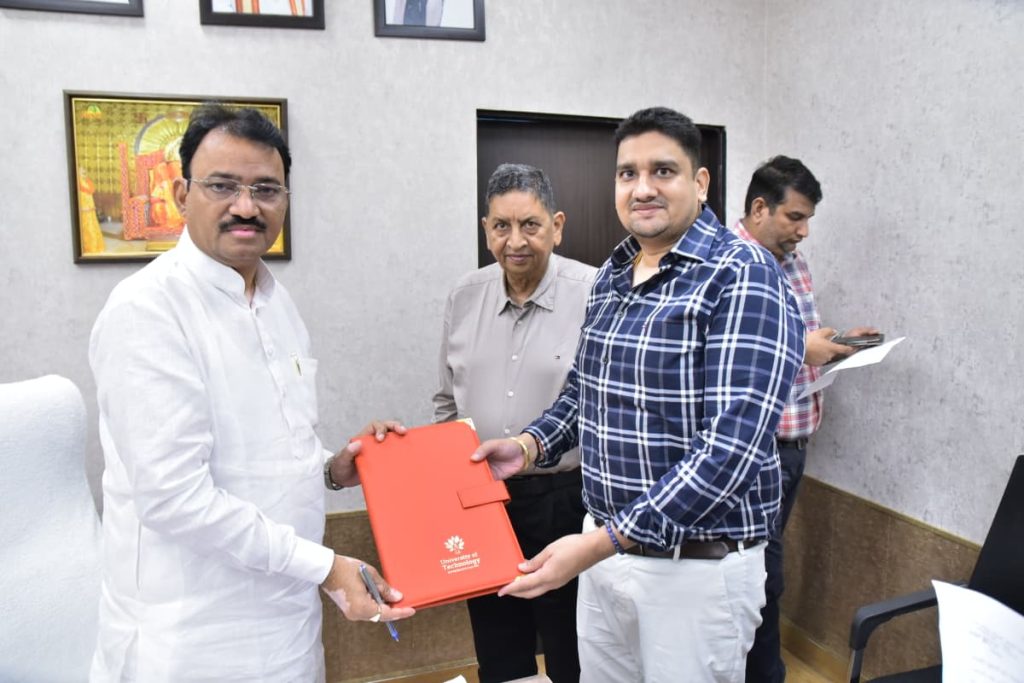 On behalf of the University of Technology, Shri Prem Surana and Dr. Anshu Surana had an inspiring interaction with Dr. Prem Chand Bairwa Ji, Deputy Chief Minister of Rajasthan. In this meaningful interaction, they shared their thoughts, perspectives and their vision regarding the institution’s growth and how it can significantly contribute towards nation-building by focusing on innovation and technology.