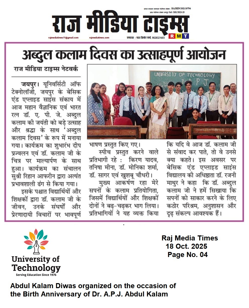 University of TechnologyPress Media- Abdul Kalam Diwas organized on the occasion of the Birth Anniversary of Dr. A.P.J. Abdul Kalam