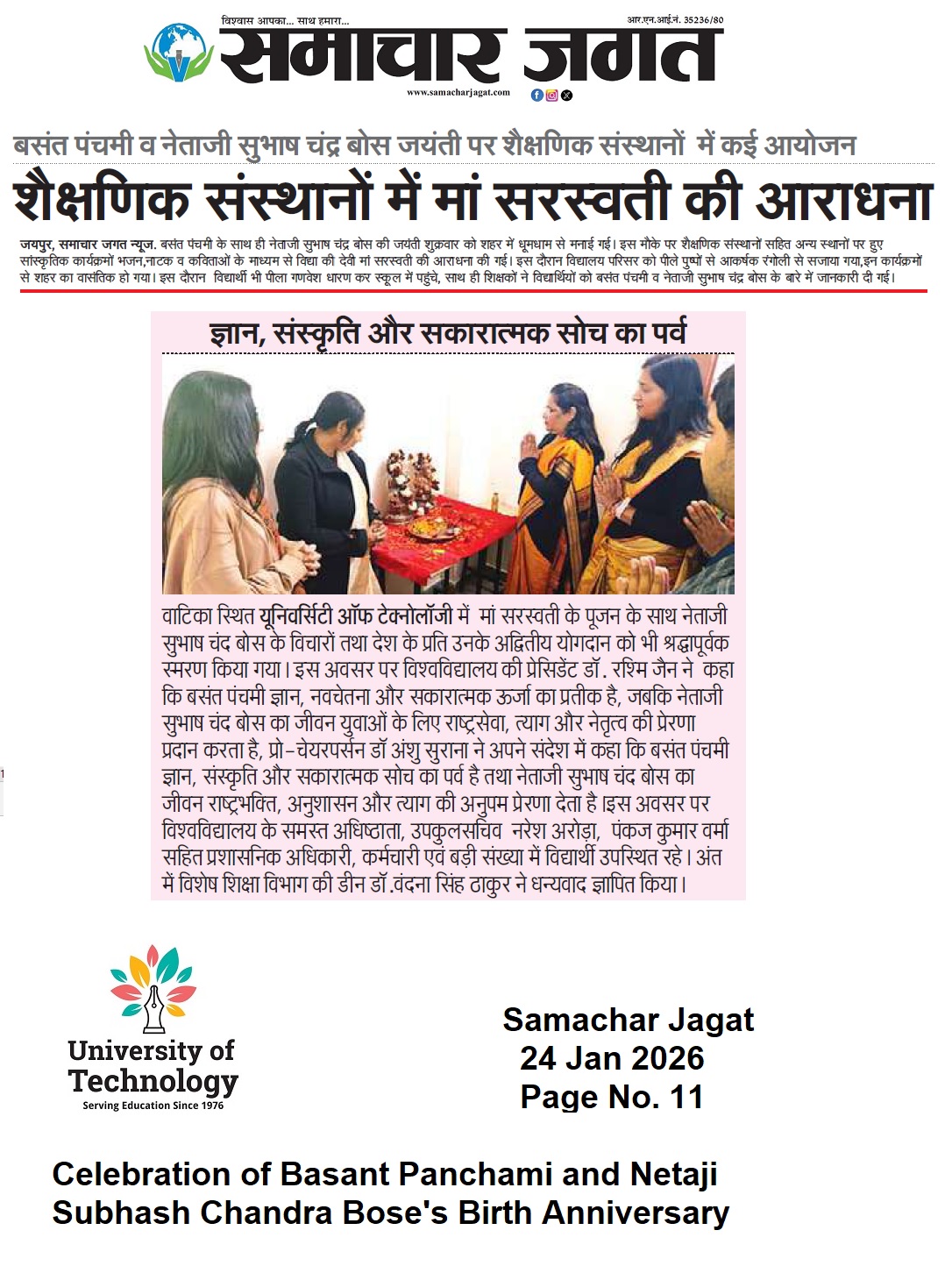 University of TechnologyPress Media- Celebration of Basant Panchami and Netaji Subhash Chandra Bose’s Birth Anniversary