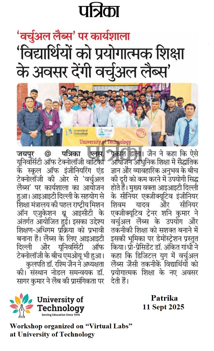 University of TechnologyPress Media Coverage- Workshop organized on Virtual Labs at University of Technology