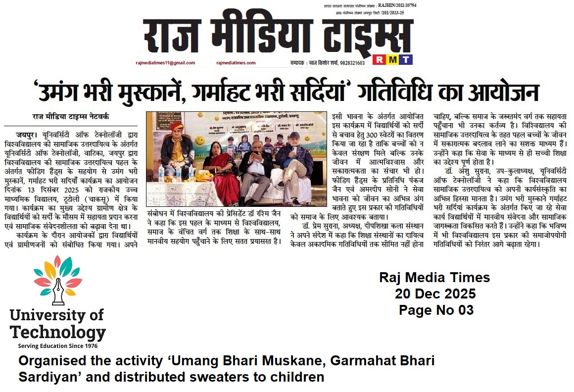 University of TechnologyPress Media- Organised the activity ‘Umang Bhari Muskane, Garmahat Bhari Sardiyan’ and distributed sweaters to children