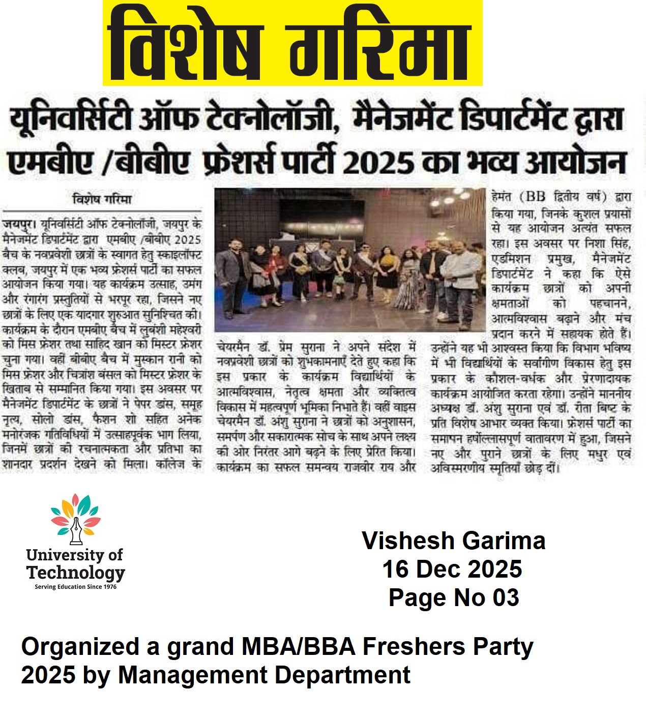 University of TechnologyPress Media – Organized a grand MBA/BBA Freshers Party 2025 by Management Department